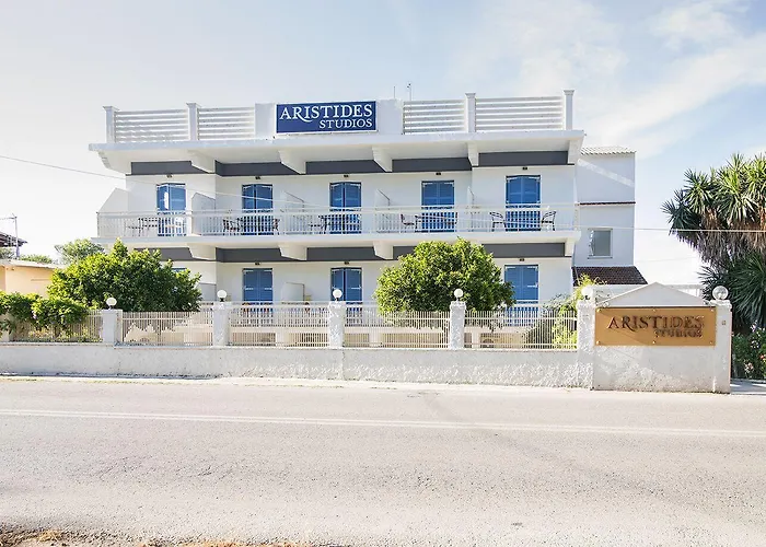 Aristides Studios zaprasza gości do 9 pokojów wyposażonych w klimatyzację oraz darmowe Wi-Fi i telewizję satelitarną. W pokojach są prywatna łazienka z oddzielną toaletą i prysznicem. W części kuchennej można skorzystać z czajnika elektrycznego, lodówki i płyty grzejnej. Z okien tego hotelu można podziwiać widoki na górę.